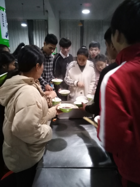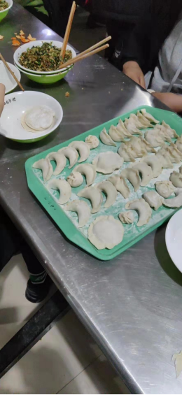在活动过程中全体同学围在一起包饺子,尽管气温很低,包饺子的材料很冰,手很冷,但是同学们还是克服重重阻碍,乐在其中。